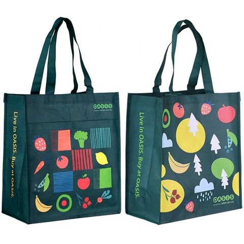 הדפסת oem בהתאמה אישית קידום מכירות ממוחזר ירוק-לחיות מחמד מטופלת תיק קניות לא ארוג