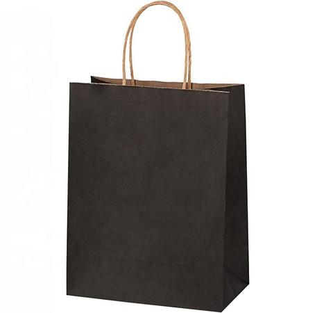 Túi giấy màu đen có logo, túi giấy nghệ thuật tái chế có tay cầm, Túi mua sắm giấy nghệ thuật tùy chỉnh có logo của riêng bạn
