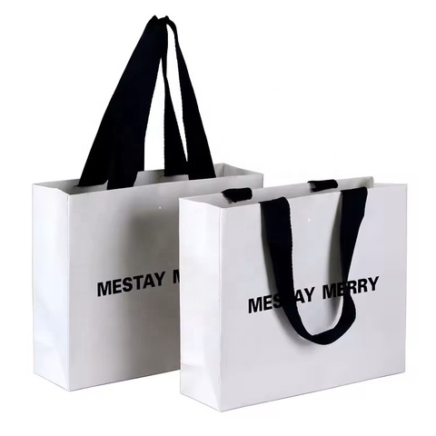 Tùy Chỉnh In Cá Nhân Logo Dày Thời Trang Cao Cấp Sang Trọng Các Tông Màu Trắng Giấy Mua Sắm Treo Túi Cho Quần Áo Cửa Hàng Bán Lẻ